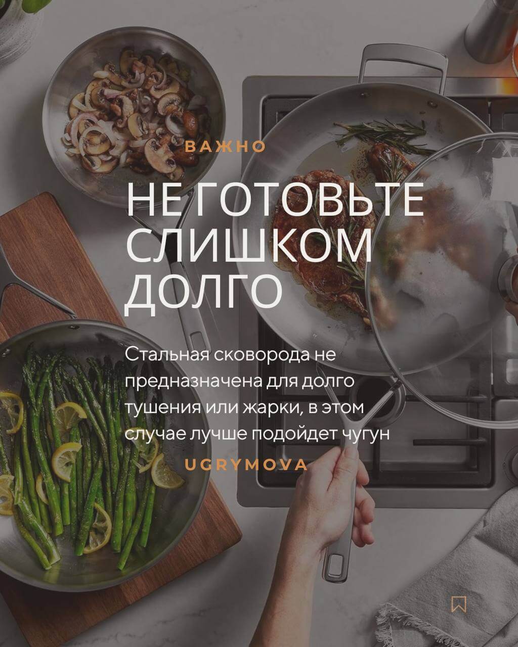 Для более лёгкого запоминания как готовить на стальной сковороде и как ухаживать за ней, листайте карусель: